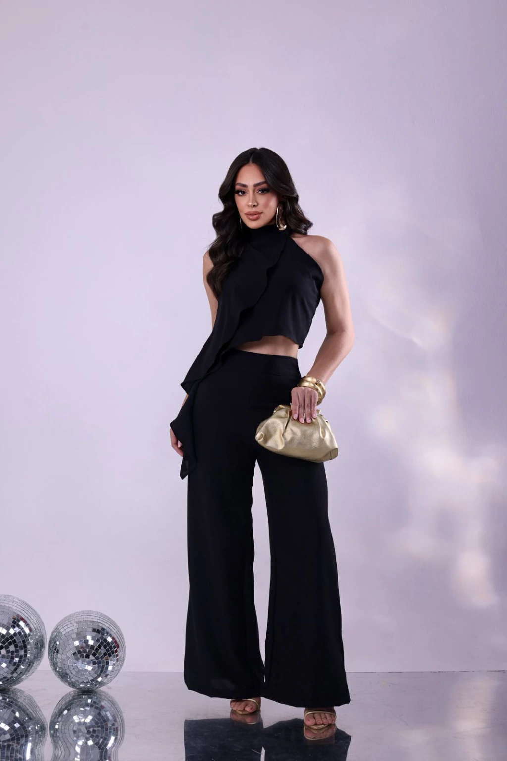 Confeccionado no tecido Orly forrado com detalhes de babado na frente ,